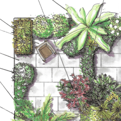 Large trees and shrubs - sculptural layer designed first.